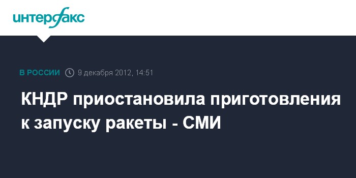 Сеул. 9 декабря. INTERFAX.RU - Северокорейские власти приостановили подготовку к запуску ракеты со спутником, сообщает в воскресенье АФП со ссылкой на южнокорейские СМИ.