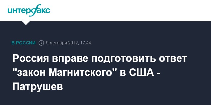 Россия вправе подготовить ответ "закон Магнитского" в США - Патрушев