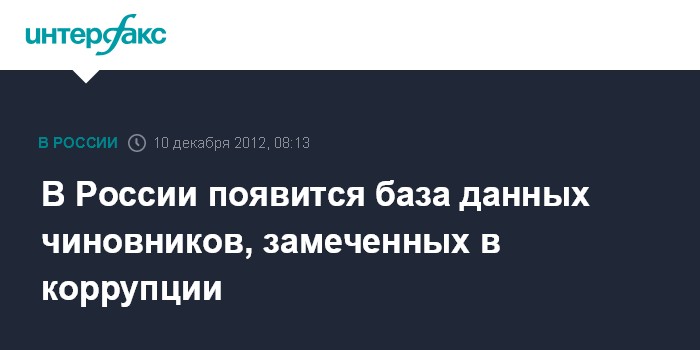 Москва. 10 декабря. INTERFAX.RU - База данных сотрудников МВД, ФМС, а также обычных граждан и даже фирм, которые были замечены или заподозрены в коррупции, должна быть создана в России к ноябрю следующего года, сообщают "Известия" в понедельник.