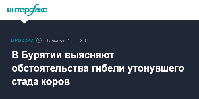 Чита. 10 декабря. INTERFAX.RU - В Бичурском районе Бурятии полиция проводит проверку по факту гибели 69 коров, которые провалились под лед на реке Хилок, сообщили агентству "Интерфакс-Сибирь в пресс-службе республиканского МВД.