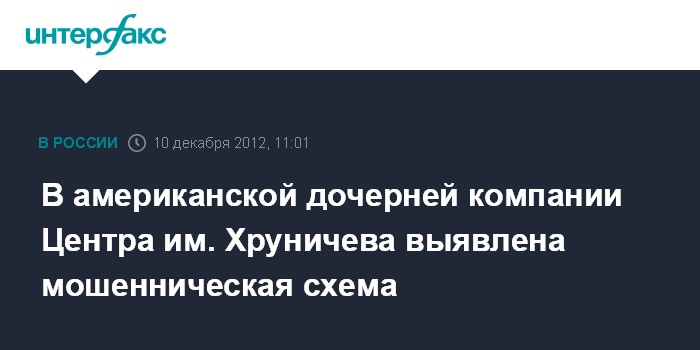 В американской дочерней компании Центра им. Хруничева выявлена мошенническая схема