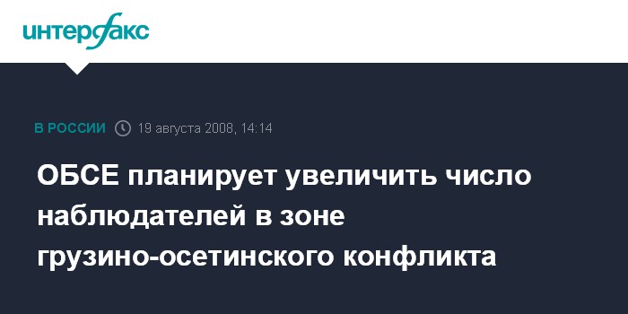 Брюссель. 19 августа. INTERFAX.RU - ОБСЕ планирует увеличить присутствие военных наблюдателей в зоне грузино-осетинского конфликта до 100 человек, сообщил сегодня в Брюсселе в штаб-квартире НАТО председательствующий в офисе ОБСЕ Александр Стуб.
