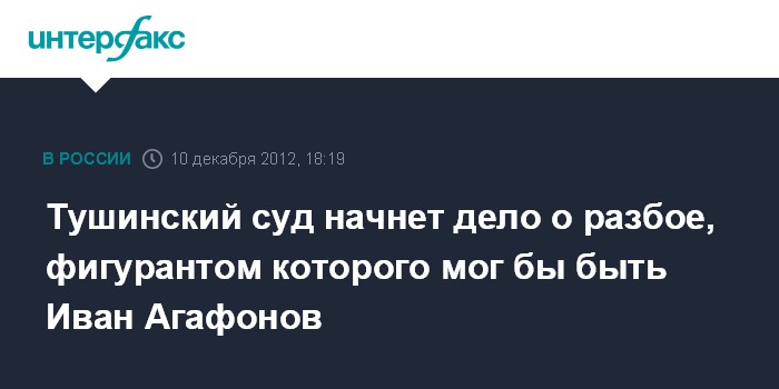 Тушинский суд начнет дело о разбое, фигурантом которого мог бы быть Иван Агафонов