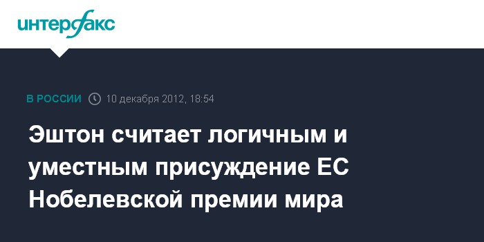 Эштон считает логичным и уместным присуждение ЕС Нобелевской премии мира