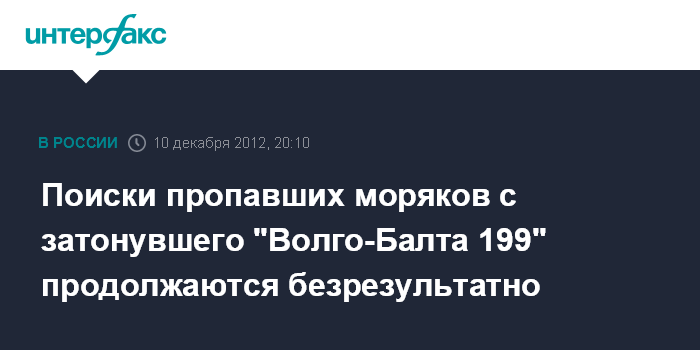 Одесса. 10 декабря. INTERFAX.RU - Поиски пропавших моряков с судна "Волго-Балт 199", затонувшего у берегов Стамбула 4 декабря, продолжаются, но до сих пор безрезультатно, сообщили агентству в компании-операторе судна ООО "Валшип".