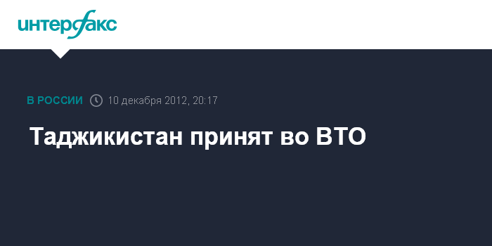 Таджикистан принят во ВТО