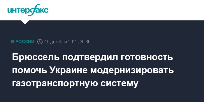 Брюссель. 10 декабря. INTEFAX.RU - ЕС подтверждает ранее заявленную поддержку помочь Украине модернизировать ее газотранспортную систему (ГТС).