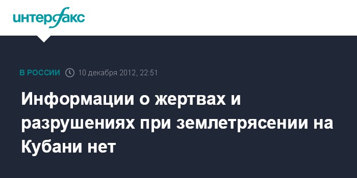 Информации о жертвах и разрушениях при землетрясении на Кубани нет