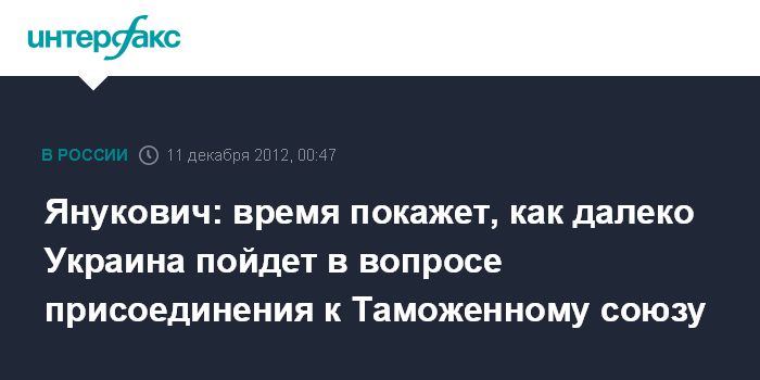 Янукович: время покажет, как далеко Украина пойдет в вопросе присоединения к Таможенному союзу