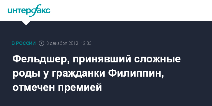 Фельдшер, принявший сложные роды у гражданки Филиппин, отмечен премией
