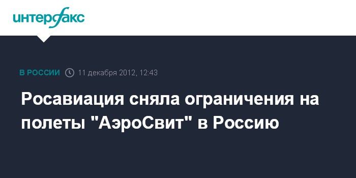 Москва. 11 декабря. INTERFAX.RU - Росавиация открыла воздушное пространство РФ для полетов украинской авиакомпании "АэроСвит", сообщил "Интерфаксу" официальный представитель ведомства.