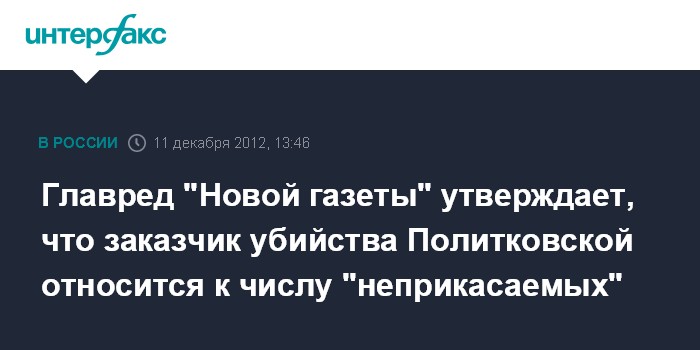 "Да, мы уважаем презумпцию невиновности. Но мы понимаем, что, когда на уровне следствия тормозится история называния заказчика, он относится к числу наиболее неприкасаемых персон в Российской Федерации", - заявил Муратов на пресс-конференции в "Интерфаксе" во вторник. Он добавил, что это его субъективное мнение.
