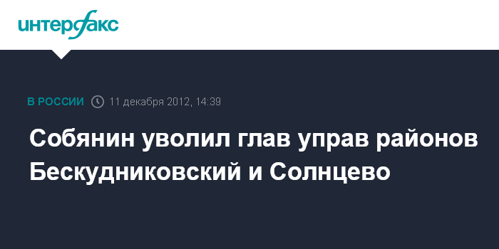 Собянин уволил глав управ районов Бескудниковский и Солнцево