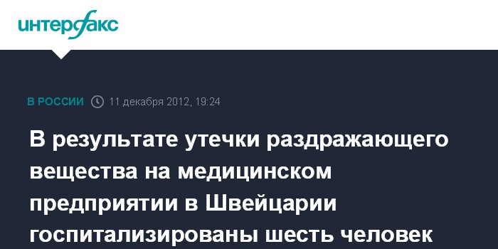 В результате утечки раздражающего вещества на медицинском предприятии в Швейцарии госпитализированы шесть человек