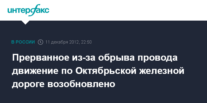 Прерванное из-за обрыва провода движение по Октябрьской железной дороге возобновлено