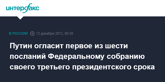 Путин огласит первое из шести посланий Федеральному собранию своего третьего президентского срока