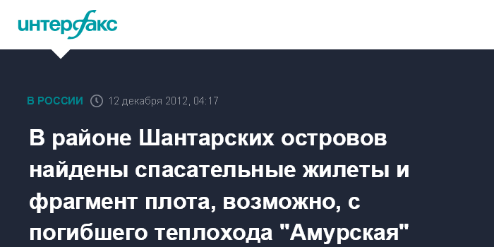 Владивосток. 12 декабря. ИНТЕРФАКС-ДАЛЬНИЙ ВОСТОК - Родственники моряков, которые пропали в Охотском море вместе с теплоходом "Амурская", заявляют о найденных трех жилетах и фрагменте плота с судна.
