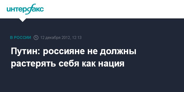 Москва. 12 декабря. INTERFAX.RU - Президент РФ Владимир Путин считает, что Россия в XXI веке должна не просто уверенно развиваться, но и сохранить свою идентичность.