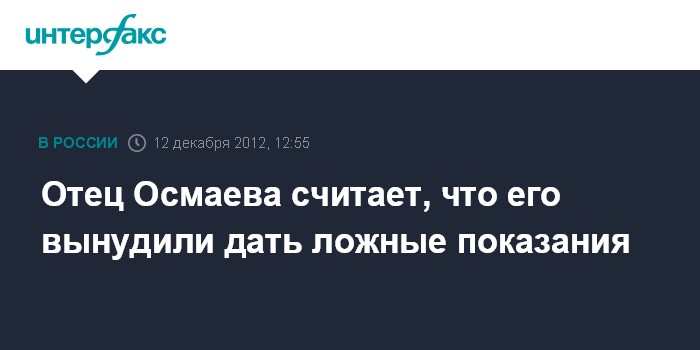 Киев. 12 декабря. INTERFAX.RU- Экс-глава "Чеченнефтепродукта", отец главного подозреваемого в организации террористического акта против президента России Владимира Путина Адама Осмаева Асланбек Осмаев считает, что правоохранители вынудили его сына оговорить себя.