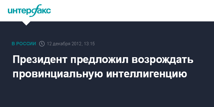 Москва. 12 декабря. INTERFAX.RU - Президент РФ Владимир Путин заявил о необходимости возрождения в России провинциальной интеллигенции как моральной опоры страны.