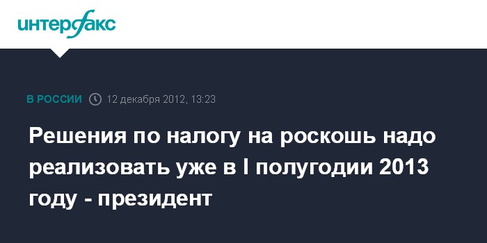 Решения по налогу на роскошь надо реализовать уже в I полугодии 2013 году - президент