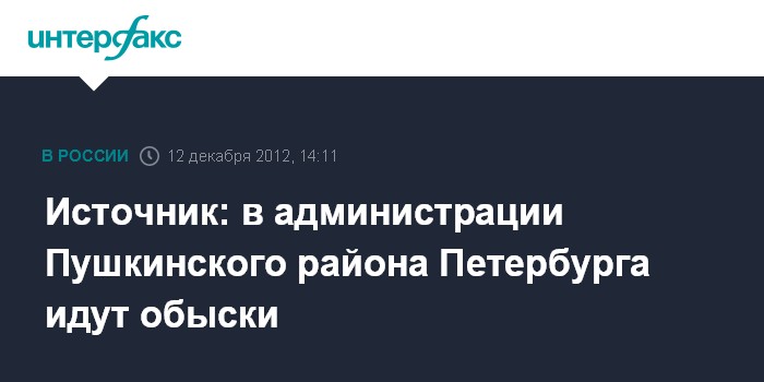 Санкт-Петербург. 12 декабря. INTERFAX.RU - Следователи проводят обыски и выемки документов в администрации Пушкинского района Петербурга, сообщил "Интерфаксу" источник в правоохранительных органах в среду.