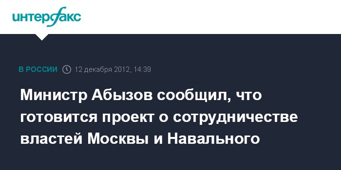 Министр Абызов сообщил, что готовится проект о сотрудничестве властей Москвы и Навального