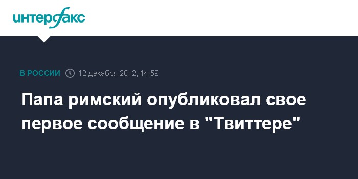 Рим. 12 декабря. INTERFAX.RU - Глава католической церкви Бенедикт XVI написал первое сообщение в "Твиттере", в котором благословил свою паству.