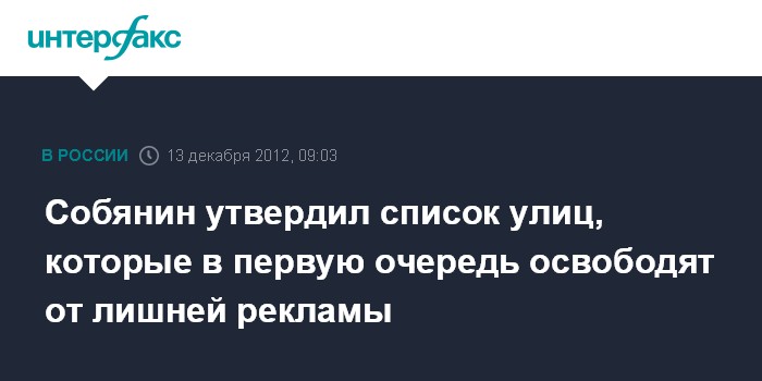 Москва. 13 декабря. INTERFAX.RU - Мэр столицы Сергей Собянин подписал постановление городского правительства "О проведении пилотного проекта по организации размещения информационных конструкций в Москве", эксперимент продлится с 1 января по 1 ноября 2013 года.