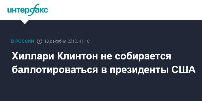 Вашингтон. 13 декабря. INTERFAX.RU - Госсекретарь США Хиллари Клинтон во время интервью телеканалу ABC подтвердила, что не намерена принимать участие в президентских выборах в США в 2016 году.
