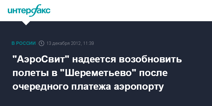"АэроСвит" надеется возобновить полеты в "Шереметьево" после очередного платежа аэропорту
