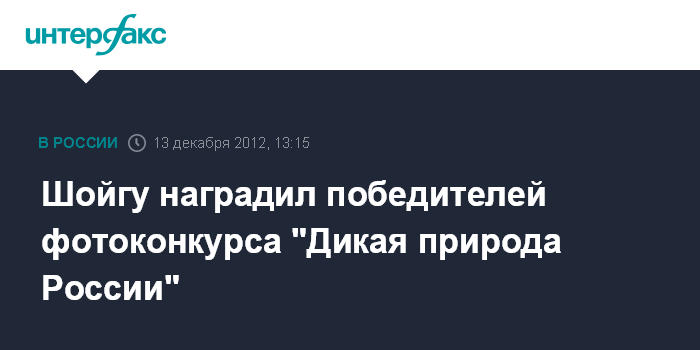 Москва. 13 декабря. INTERFAX.RU – Президент Русского географического общества, министр обороны РФ Сергей Шойгу наградил победителей всероссийского фотоконкурса "Дикая природа России", организованного обществом и журналом "National Geographic Россия".