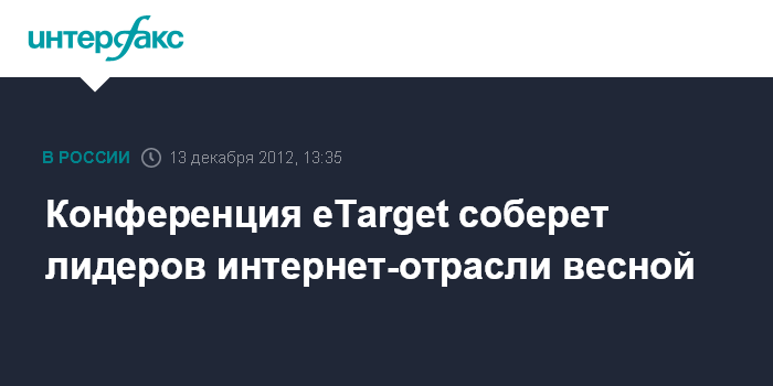Москва. 13 декабря. INTERFAX.RU – В Москве 21-22 марта 2013 года пройдет девятая конференция eTarget-2013, посвященная вопросам интернет-маркетинга и управления аудиторией в Интернете.