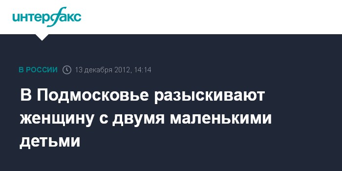 Москва. 13 декабря. INTERFAX.RU - Следователи разыскивают в Подмосковье молодую женщину, которая неделю назад могла уйти с двумя малолетними детьми из дома в Электростали, сообщили в Следственном комитете РФ.
