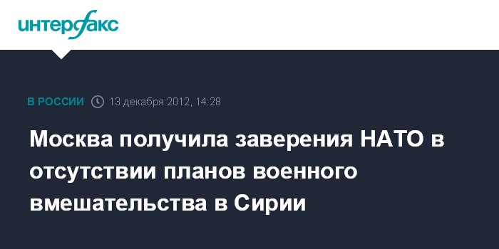 Москва получила заверения НАТО в отсутствии планов военного вмешательства в Сирии