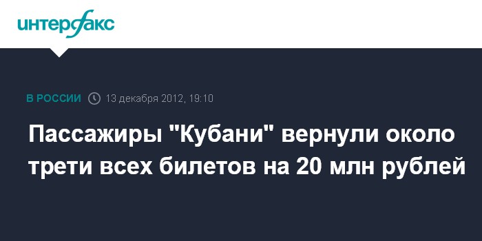Краснодар. 13 декабря. INTERFAX.RU - Пассажиры авиакомпании "Кубань" вернули 4,1 тыс. билетов на общую сумму 20 млн руб, говорится в сообщении авиаперевозчика.