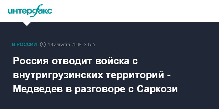 Россия отводит войска с внутригрузинских территорий - Медведев в разговоре с Саркози