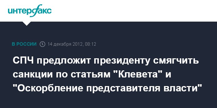 "Главное место в предложениях СПЧ занимает смягчение статьи "Клевета", которая этим летом со скандалом была возвращена в УК РФ, а максимальный штраф по ней вырос до 5 млн рублей", - отмечает издание, которому удалось ознакомиться с текстом рекомендаций СПЧ.