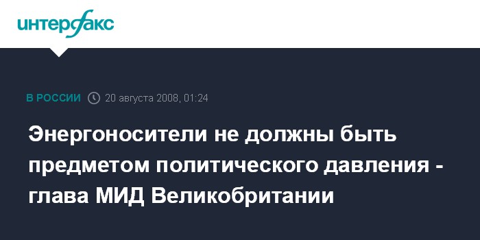 Тбилиси. 20 августа. ИНТЕРФАКС - Глава МИД Великобритании считает крайне важным вопрос энергополитики Евросоюза во взаимоотношениях с Россией.