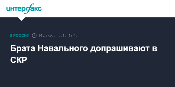 Москва. 14 декабря. INTERFAX.RU - Официальный представитель СКР Владимир Маркин подтвердил, что по делу братьев Навальных допрашивается один из них - Олег.