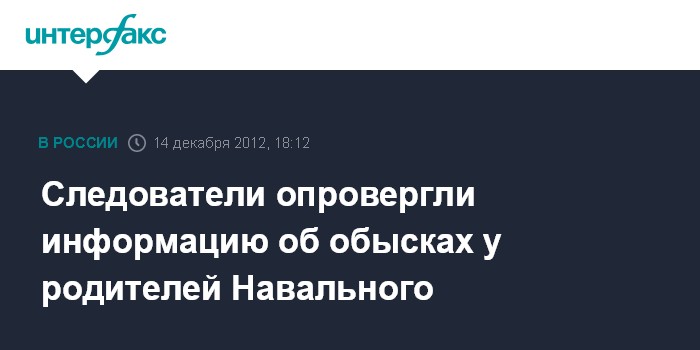 Москва. 14 декабря. INTERFAX.RU - Следственный комитет РФ опроверг информацию о том, что в рамках уголовного дела "братьев Навальных" проводились обыски по месту проживания их родственников.