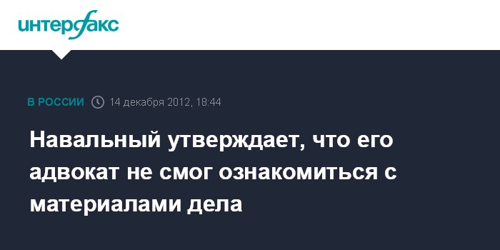 Навальный утверждает, что его адвокат не смог ознакомиться с материалами дела