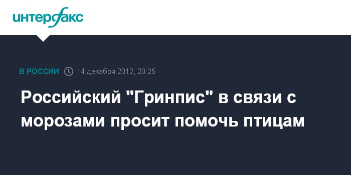 Москва. 14 декабря. INTERFAX.RU - Российское отделение "Гринпис" просит население помочь диким птицам, страдающим из-за морозов.