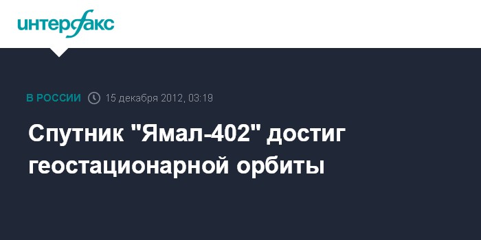 Спутник "Ямал-402" достиг геостационарной орбиты