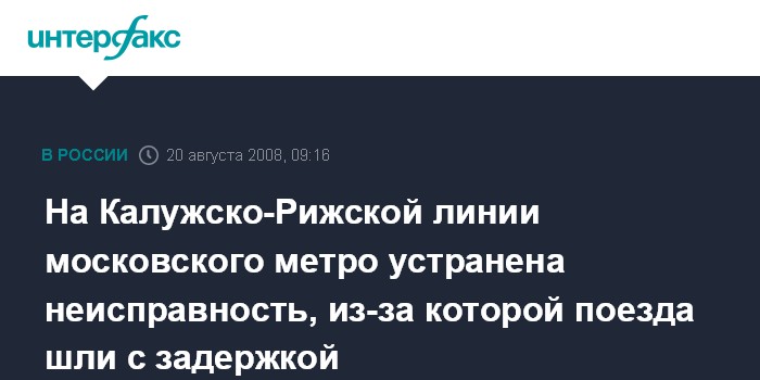 Москва. 20 августа. INTERFAX.RU - В московском метро в среду утром произошла неисправность в работе устройства сигнализации на Калужско-Рижской линии, сообщил "Интерфаксу" руководитель пресс-службы метро Дмитрий Головин.