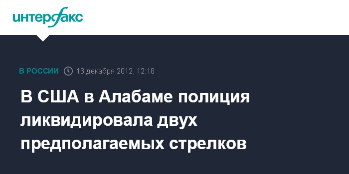 Вашингтон. 16 декабря. INTERFAX.RU - В американском штате Алабама сотрудники полиции застрелили двух предполагаемых преступников, совершивших два несвязанных друг с другом нападения с применением огнестрельного оружия, сообщает в воскресенье агентство АП.