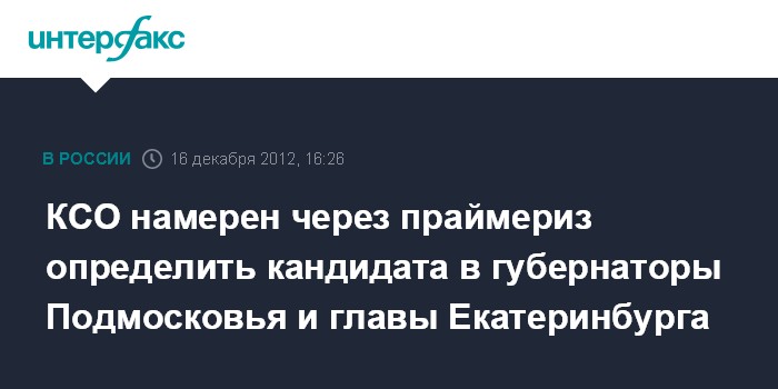 КСО намерен через праймериз определить кандидата в губернаторы Подмосковья и главы Екатеринбурга