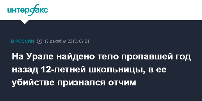 На Урале найдено тело пропавшей год назад 12-летней школьницы, в ее убийстве признался отчим
