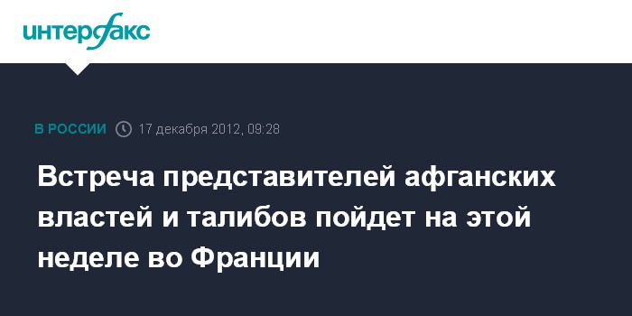 Дубай. 17 декабря. INTERFAX.RU - Трое представителей властей Афганистана и двое влиятельных представителей афганских талибов проведут на этой неделе встречу под Парижем, сообщает в понедельник телеканал "Аль-Арабия".