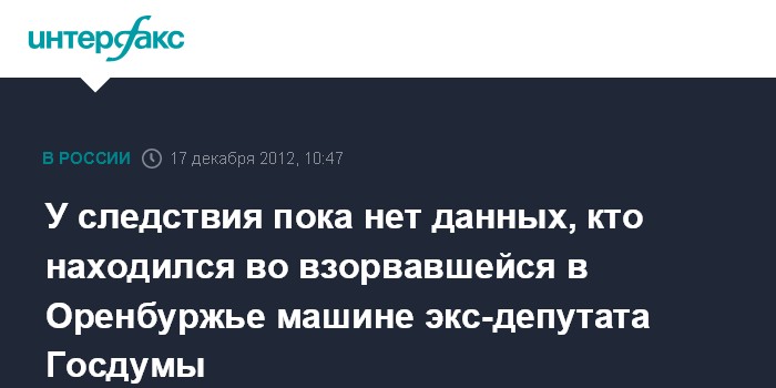 У следствия пока нет данных, кто находился во взорвавшейся в Оренбуржье машине экс-депутата Госдумы